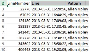 6. Here had been the export results with time stamp and pattern match for Ellen Ripley.