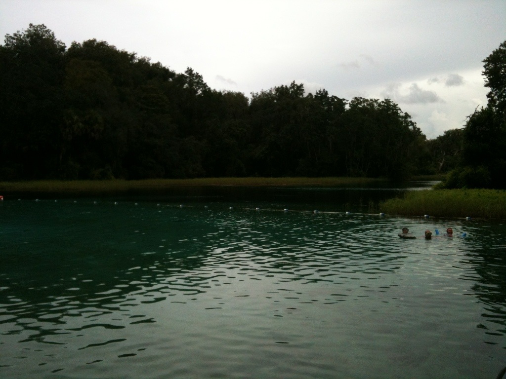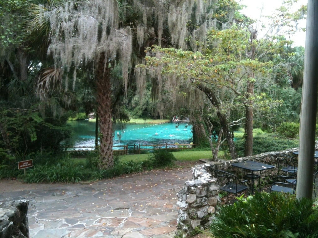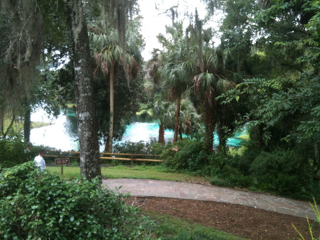 After soaking up these views, another sign for Butterfly Gardens had drawn me into an area with variety of plants and flowers. Yes, there had been a few butterflies, tons of love bugs, and a solemn bubble bee. After that, remnants of an old zoo had drawn me around a loop. After working up a sweat, it had seemed natural progression to coalesce to the river and springs. In those waters had been a few underwater cropping of rocks to stand on. During that dip, a train had rumbled by on the nearby tracks. That had generated an unexpected bit of excitement. The rumbling sound had resonated through the concrete pier into the spring waters.