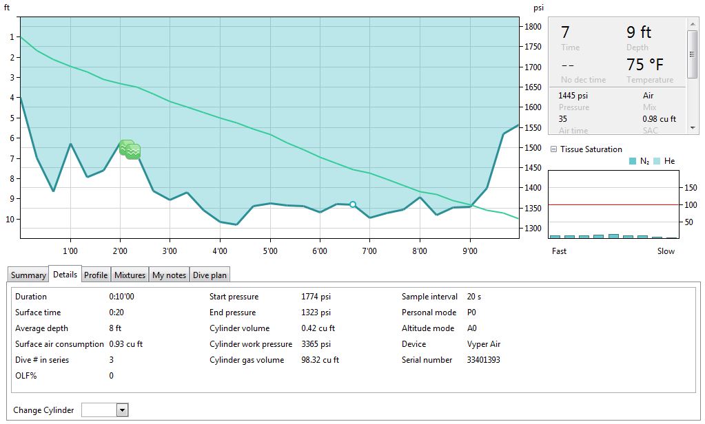 The day after getting home from Blue Heron Bridge dive, I had synced the Vyper Air with desktop Suunto software.The below outputted screen captures were from the three mini dives at Blue Heron Bridge. What had really peaked my interest, air consumption and depth. I was a bit obsessive with air management after bleeding through my tanks in Open Water scuba class. Or maybe it was just the notion of milking the maximum experience per cylinder. Regardless, it was extremely revealing to look at the depth, time, and air utilization with the surface intervals for snorkeling. Hopefully, I had provided some insight should you be in the market for a dive computer. Safe travels!